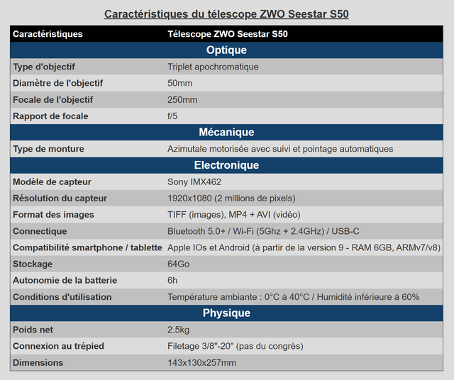 Instrument tout-en-un : tube optique, monture, caméra et mini-ordinateur inclus