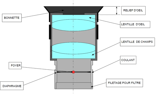 Design optique de type Plössl, 4 lentilles, 52° de champ